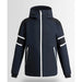 Amwo ski jacket in Marin/Noir/Neige blends stretch‑jersey backed 3‑layer fabric with seams fully taped and a waterproof, windproof, breathable membrane for mountain protection. With welded seams, underarm vents, a fixed snow‑breaker, ski‑pass pocket, goggle pocket and insulated quilting, it’s engineered for year‑round alpine activity with a tailored finish
