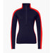 • The Fuoco Ski Pully in French Blue is a sleek midlayer that combines alpine performance with bold style. Made from stretch jersey with a soft brushed back, it offers warmth and comfort, featuring colorblock raglan sleeves, stripe insets, a close-fitting collar, half-zip front, and subtle branded sleeve detail—perfect for layering on the slopes or wearing solo après-ski