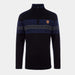Popular contemporary Nordic half zip, ribbed collar and faux lether logo patch. 50% merino/50% acrylic blend