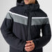 Maddox mountain jacket: waterproof, windproof, breathable stretch shell with Thermolite Active insulation for lightweight warmth. Features detachable helmet-compatible hood, 2-way pit vents, stretch powder skirt, adjustable cuffs and hem, microfleece collar, and multiple pockets. Seam-sealed with YKK zippers for full performance.