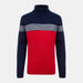 Scott ½ Zip sweater: race-inspired colour blocking in a soft 50/50 merino–acrylic blend. Features 3D chest stripes, SKI monogram, ribbed collar and hem, and welted YKK zipper—warm, easy to wear, and perfect for alpine life