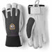 Hestra Army Leather Patrol 5-Finger gloves in Black offer durable, functional warmth for winter adventures. Impregnated goat leather palms ensure grip and comfort, while a softshell backhand protects against the elements. A removable fleece liner provides adjustable insulation, and features like a wrist strap and carabiner add convenience, making them ideal for skiing, touring, and snowboarding