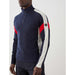 Slim-fit mid-layer crafted from 96% superfine merino wool / 4% elastane for natural warmth, stretch, and breathability. Featuring a quarter-length YKK zipper and bold colour-blocked sleeves, it delivers versatile alpine style—perfect for layering on the slopes or wearing off-piste