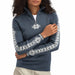 • Geilo sweater in 100% skin-soft merino with durable double-knit construction. Quarter-zip, medium-high neck, and rib-knit for stretch. Features Norwegian eight-petal rose pattern on sleeves and back. Sporty, timeless design. Model 189 cm, size Large. Machine washable. Knitted in Norway.