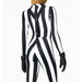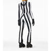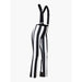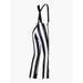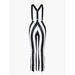 Lunira ski salopettes in Linea black/white: a striking striped silhouette crafted in 100% polyester with WP 10,000 mm / WVP 5,000 g/m² protection (JIS standard). Features slim-fit styling with detachable suspenders, side zipper closure and built-in snowcatchers—efortlessly blending bold haute-mountain style with technical performance