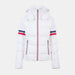 Above hip length, YKK zip with contrasting teeth, powder skirt, adjustable bungee hem, lift pass pocket on sleeve, Lycra knit inner cuffs with thumbhole, internal zip and mesh pockets with detachable hood.