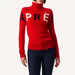 Perfect Moment’s fitted Merino turtleneck features a bold “APRÈS” intarsia, ribbed trims, and hip-length silhouette—warm, stylish, and ideal for slopes or après-sk