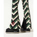 Combines vintage-inspired style with modern performance. Crafted from water-resistant Toray Dermizax™ fabric, these pants offer 4-way stretch and a thermal fleece lining for warmth and mobility. The high-rise, flared silhouette is complemented by snow gaiters with silicone elastic and snap closures, anti-tear guards, and adjustable zippers at the hem for a tailored fit over boots. Two front zip pockets provide secure storage