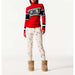 Perfect Moment’s fitted Merino turtleneck features a bold "CORTINA" intarsia and star sleeve motifs, offering warmth, breathability, and a flattering hip-length silhouette—ideal for slopes or après-ski.