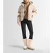 Charloy down jacket features a water‑repellent iridescent fabric, synthetic down insulation (Sorona®) rated for cold‑weather performance down to approx –15 °C, plus functional ski details such as a fixed adjustable hood, storm cuffs with thumbholes, ski‑pass pocket and colour‑block detailing on sleeves and elbows