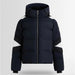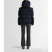 Charloy down jacket features a water‑repellent iridescent fabric, synthetic down insulation (Sorona®) rated for cold‑weather performance down to approx –15 °C, plus functional ski details such as a fixed adjustable hood, storm cuffs with thumbholes, ski‑pass pocket and colour‑block detailing on sleeves and elbows